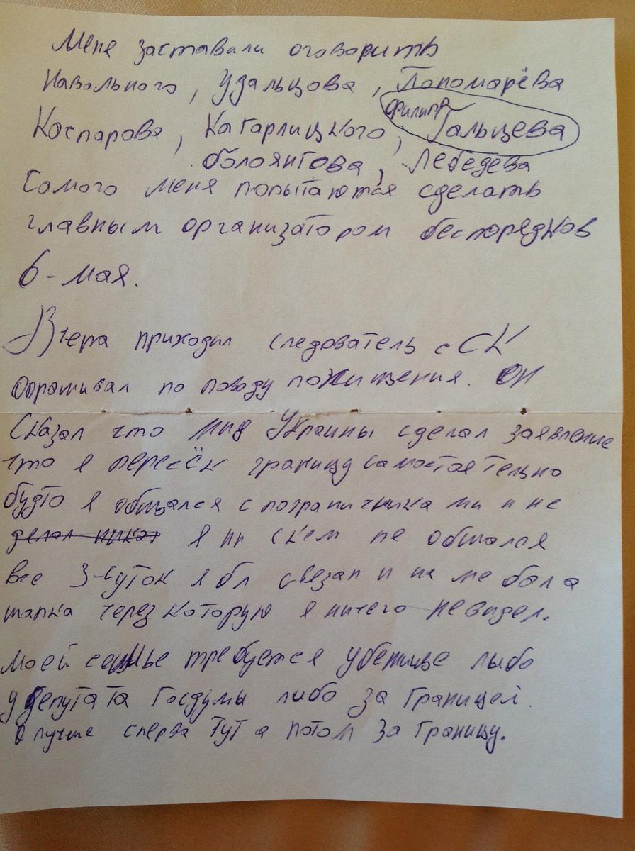 Я вынес в сентябре 2012 из Лефортово от Развозжаева это письмо, чтобы спасти некоторых из перечисленных в нем людей