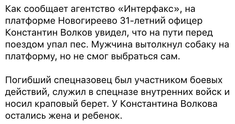 В Москве погиб спецназовец, спасая собаку от электрички